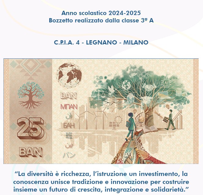 Premio per le scuole bandito dalla Banca D'Italia per a realizzazione di un progetto grafico di banconota attinente al tema: